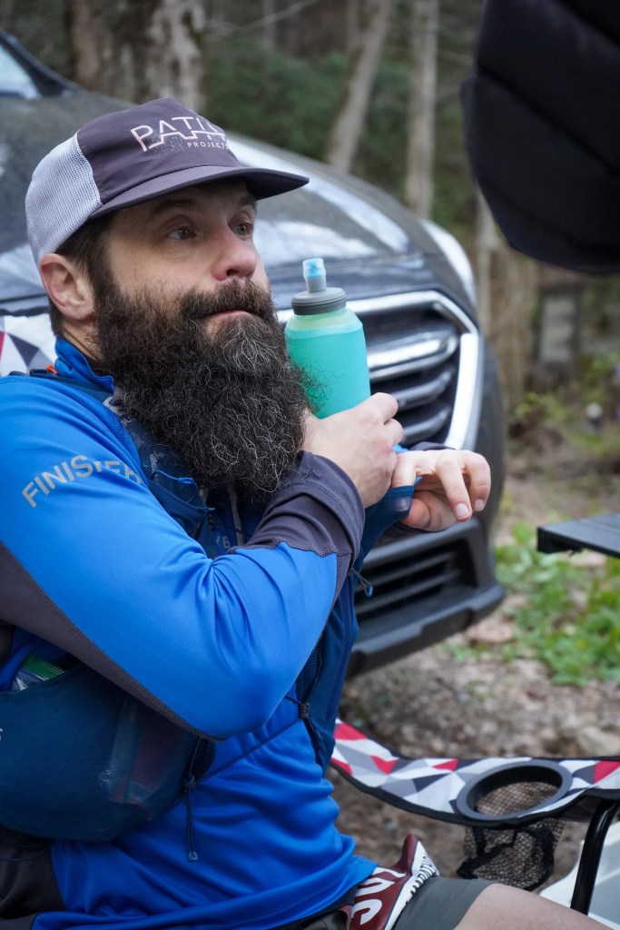 On my person I usually carried, several flavors of maple syrup (this is easier to eat than honey because it is less viscous) also have dried fruit (in the form of dates) and I have bacon. I will typically target taking in calories every 20 to 30 minutes and will increase or decrease depending on how I’m feeling. Fortunately, I have gotten pretty in tune with how I’m feeling and was able to recognize when I needed more calories or when I was overdoing it at this race.
